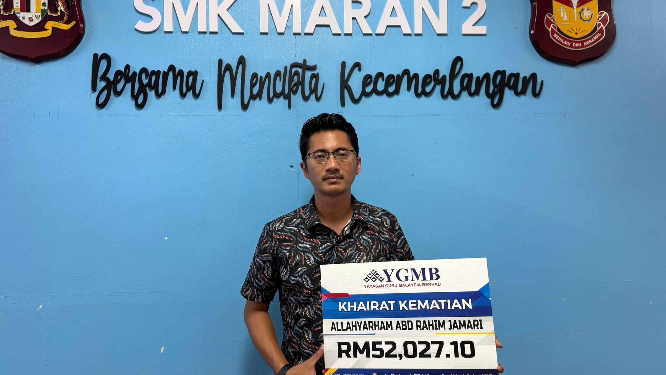 MARAN, 17 JUN 2025 – Allahyarham Abd Rahim Jamari, 60, telah meninggal dunia akibat penyakit kanser usus. Anak sulung Allahyarham, Abdul Rafiuddin sebagai waris telah menerima manfaat Khairat Kematian Ahli Skim Emas itu berjumlah RM52,027.10