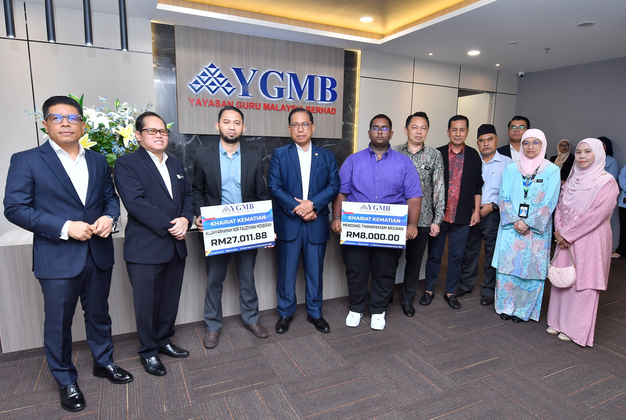 Allahyarhamah Nor Fauziyana Mosbiran, 37, yang merupakan guru di SK Bandar Tun Hussein Onn 2, Cheras, telah meninggal dunia pada April lalu akibat penyakit kritikal, kanser payudara. Suami Allahyarhamah, Mohd Norazmi Nordin sebagai waris utama telah menerima manfaat Khairat Kematian Ahli Skim 18 berjumlah RM27,011.88. Manakala, Veshnu A/L Sinnaiyah waris Mendiang Thanapakiam A/P Arjunan pula menerima manfaat Khairat Kematian Ahli Skim 16 berjumlah RM8,000.