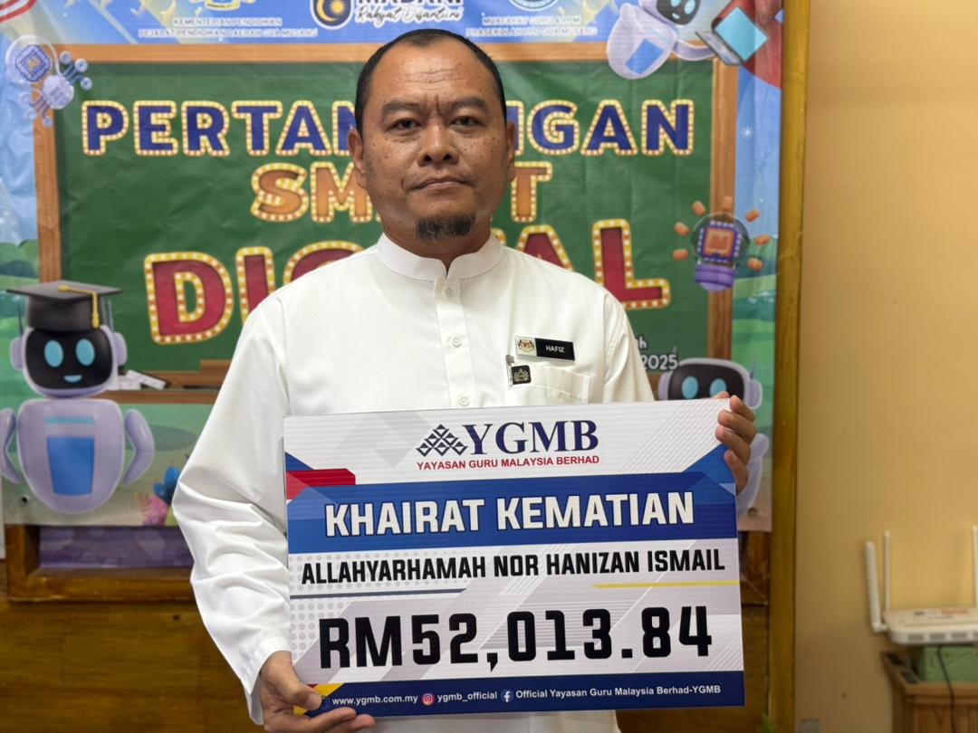 GUA MUSANG, 13 JANUARI 2026 – Yayasan Guru Malaysia Berhad (YGMB) telah menyerahkan manfaat Khairat Kematian Ahli Skim Emas kepada Abdul Hafiz Jusoh, suami kepada Allahyarhamah Nor Hanizan Ismail, yang telah meninggal dunia pada Ogos tahun lalu akibat kanser paru-paru pada usia 43 tahun.